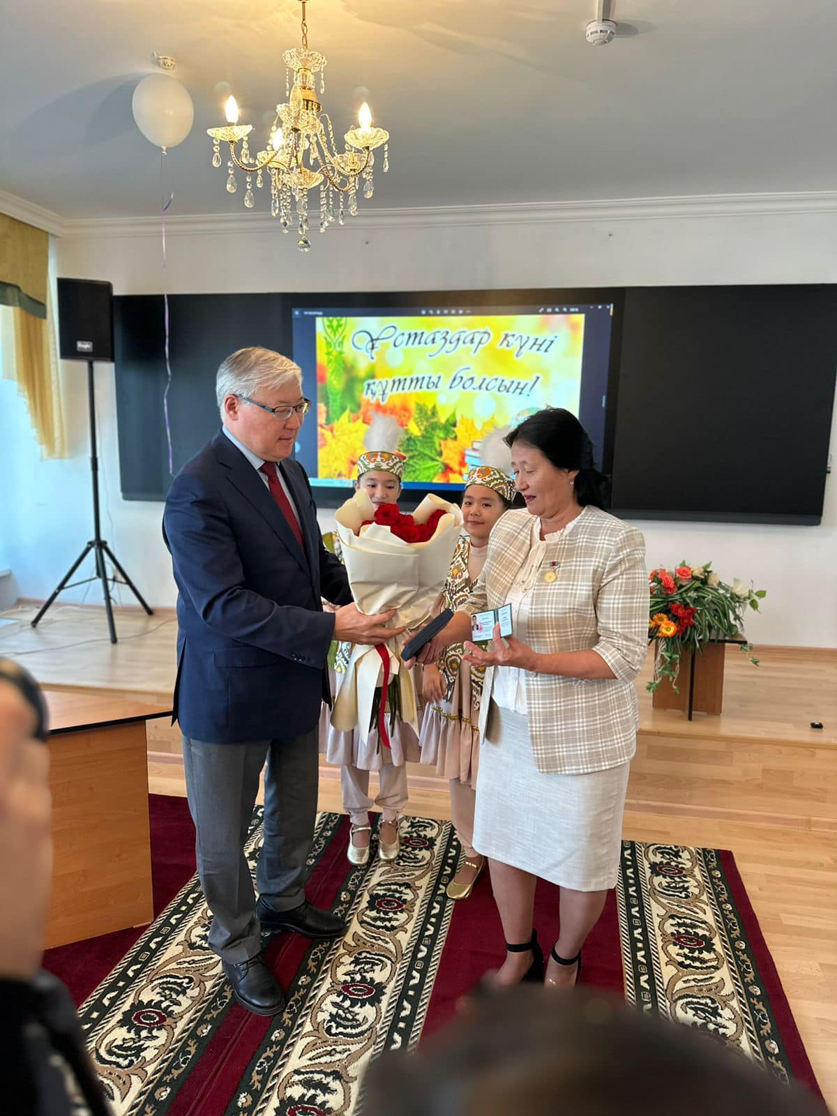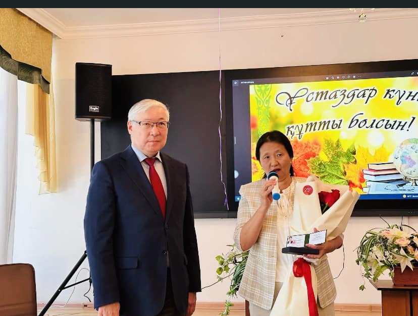 📝📚Ұстаздардың кәсіби мерекесіне орай 36 жылдан астам уақытын білім беру саласына арнаған, алдынан сан шәкіртті ұшырған, республикалық, облыстық, қалалық олимпиада, ғылыми жоба жүлдегерлері мен жеңімпаздарын дайындаған бастауыш сынып мұғалімі Нуршина Рысжан Аманжанқызына Қазақстан Республикасы Президентінің 2023 жылдың 4 қазанындағы №365 жарлығымен “Қазақстанның еңбек сіңірген ұстазы” құрметті атағы берілді. Аталған мемлекеттік награданы ұлағатты ұстазға Ұлытау облысының әкімі Берік Әбдіғалиұлы табыс етті. Аймақ абыройын асырып, биік белеске шыққан Рысжан Аманжанқызын жоғары марапатымен шын жүректен құттықтаймыз.