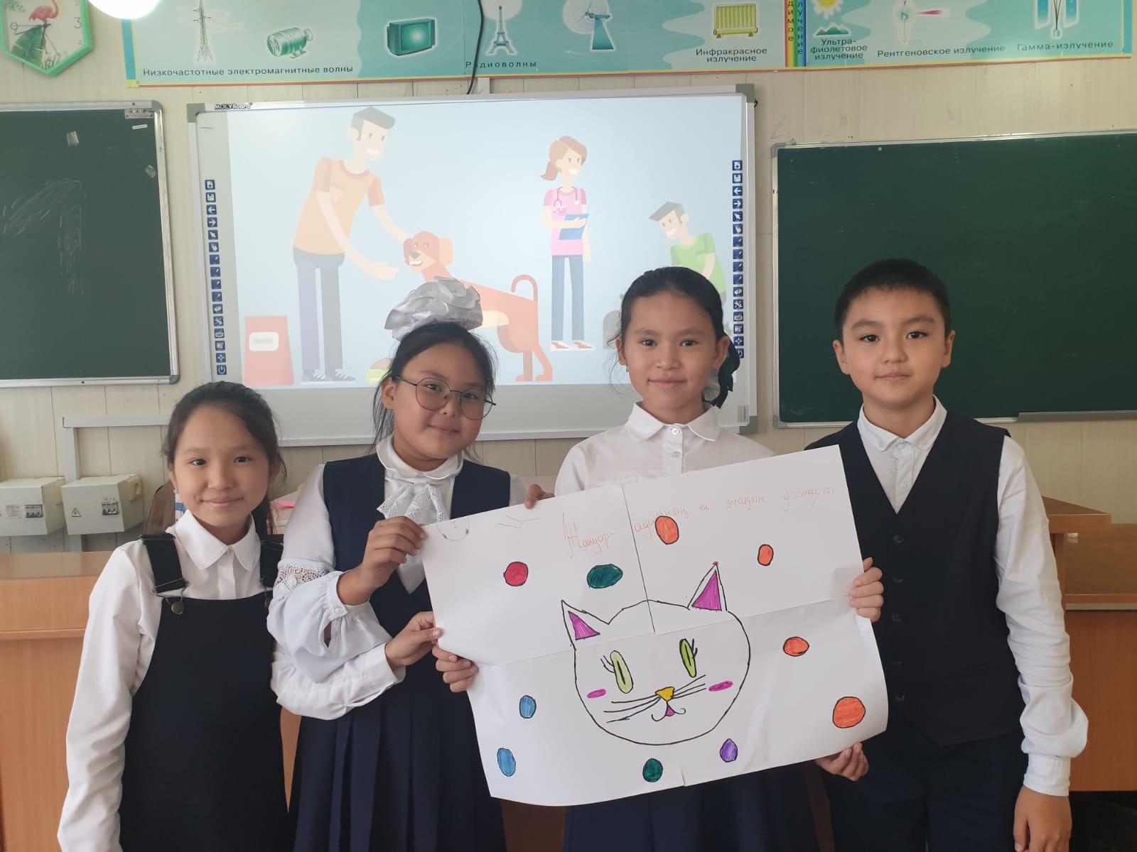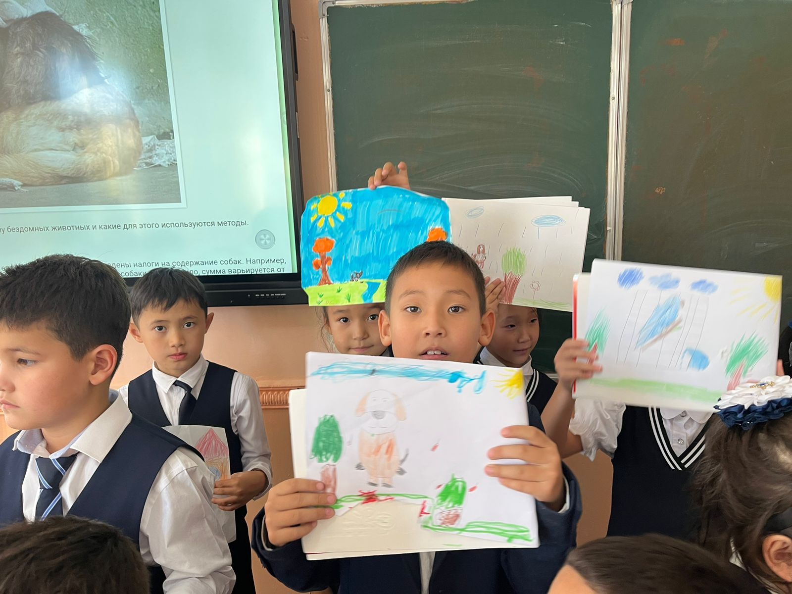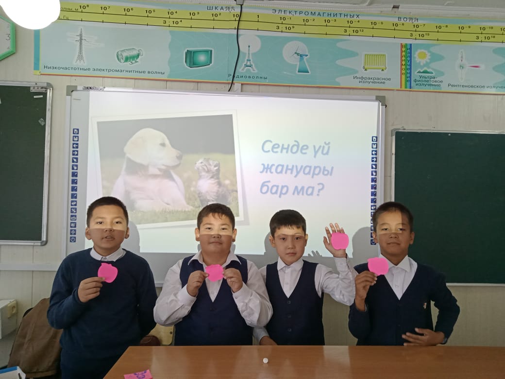 Қазақстан Республикасының Экология және табиғи ресурстар министрлігі «Жануарларға жауапкершілікпен қарау туралы» Заңын іске асыру бағытында жануарлармен жауапты қарым-қатынас мәселелерін жүзеге асыру мақсатында 5 "В",6 "А" сыныптарында "Жануарларға қамқорлық көрсету адамзаттың міндеті" 2"Г" 3 "В" сыныптарында сынып сағаттары ,"Үйсіз жануарларды бірге қорғайық" 4 "А",4 "Б" жануарларға жауапкершілікпен қарайық" тақырыбында викториналық ойын өткізілді. Мақсаты: Оқушыларды мейірімділікке, сезімталдыққа, жануарлар әлеміне ілтипатпен қарауға, құрметтеуге тәрбиелеу.
