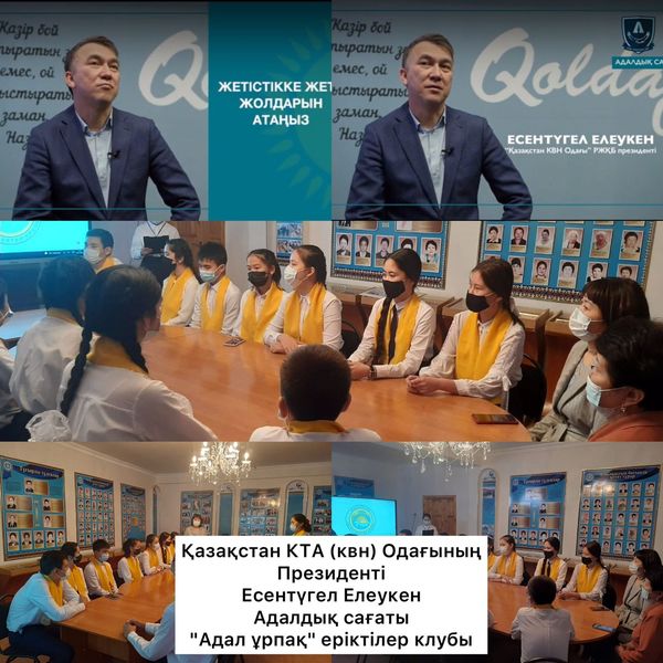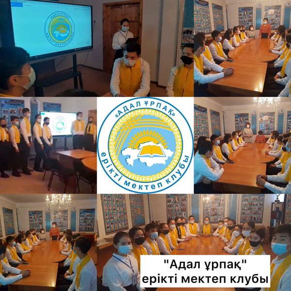 28.10.2021 күні гимназиядағы "Адал ұрпақ" тобының мүшелері "Адалдық сағаты" аясында Қазақстан КТА Одағының Президенті Есентүгел Елеукеннің сұхбатын көріп, талдау жасады. Есентүгел Елеукеннің: "Қазіргі жастардың бойындағы қандай қасиеттерді көргіңіз келеді?, "Адалдық деген ұғымды қалай түсінесіз?" деген сұрақтарға берген жауабын оқушылар өзара талқылап, өз ойларын ортаға салып, өзара пікір алмасты.