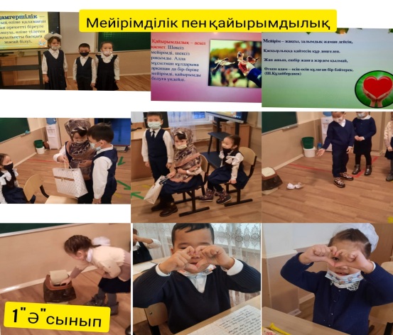 22 қараша күні сыбайлас жемқорлыққа қарсы іс- қимыл жоспарына сәйкес өскелең ұрпақты сыбайлас жемқорлыққа қарсы мәдениетті қалыптастыру мәселелері бойынша мектепішілік жоспарға сәйкес 1 "Ә",1 "Ғ" сыныптарында "Мейірімділік пен адалдық" "Мейірімділік пен қайырымдылық" тақырыбында тәрбие сағаттары өтті. Мақсаты: Оқушыларға мейірімділіктің адам өміріндегі маңыздылығын түсіндіру, өзара сыйластық қарым-қатынастарын дамыту, адалдыққа, адамгершілікке баулу.