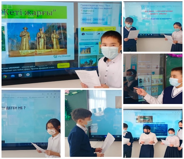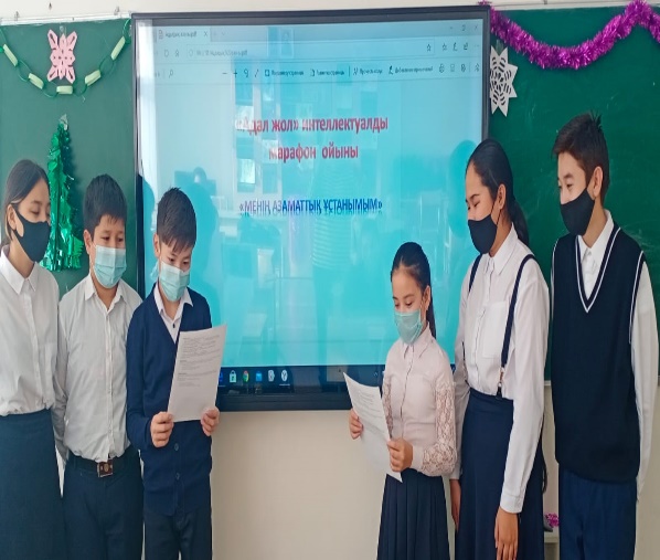 27.12.2021ж "Адал жол-честный путь" тақырыбында 7"А" ,"Ә" сыныптарымен блиц-турнир түрінде марафон өтті. Мақсаты: оқушыларға адалдық пен шындықтың адами қарым-қатынастағы мәнін түсіндіру. Оқушылардың бойына заңға деген сүйіспеншілік сезімін нығайту, Конституциядағы міндеттерді орындайтын азаматты, шыншыл да әділетті және парасатты тұлғаны қалыптастыру. Сынып сағатында еліміздің тарихи қайраткерлері - Қасым хан, Есім хан, Тәуке ханның қазақ мемлекетін орнықтырудағы құқықтық ғұрыптары мен заңдық нормаларына байланысты викториналық сұрақтар қойылды. Және қазіргі заманғы Қазақстанның азаматтары арасындағы қатынастарды реттейтін заңдық нормаларға сүйене отырып «Тығырықтан шығар жол қайсы» (ситуациялық жағдайды шешу) топтық пікір-таластар өткізілді.